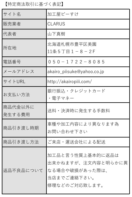 ・商品取付に当たっての車両トラブルや工賃に関しては一切の責任を負わないと致します